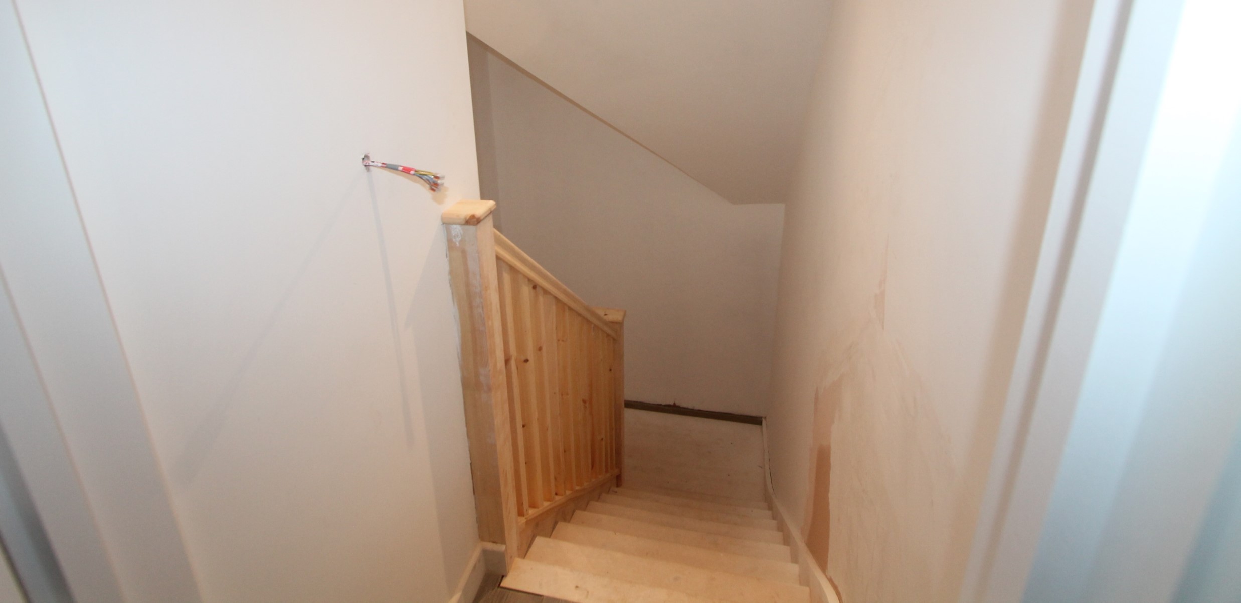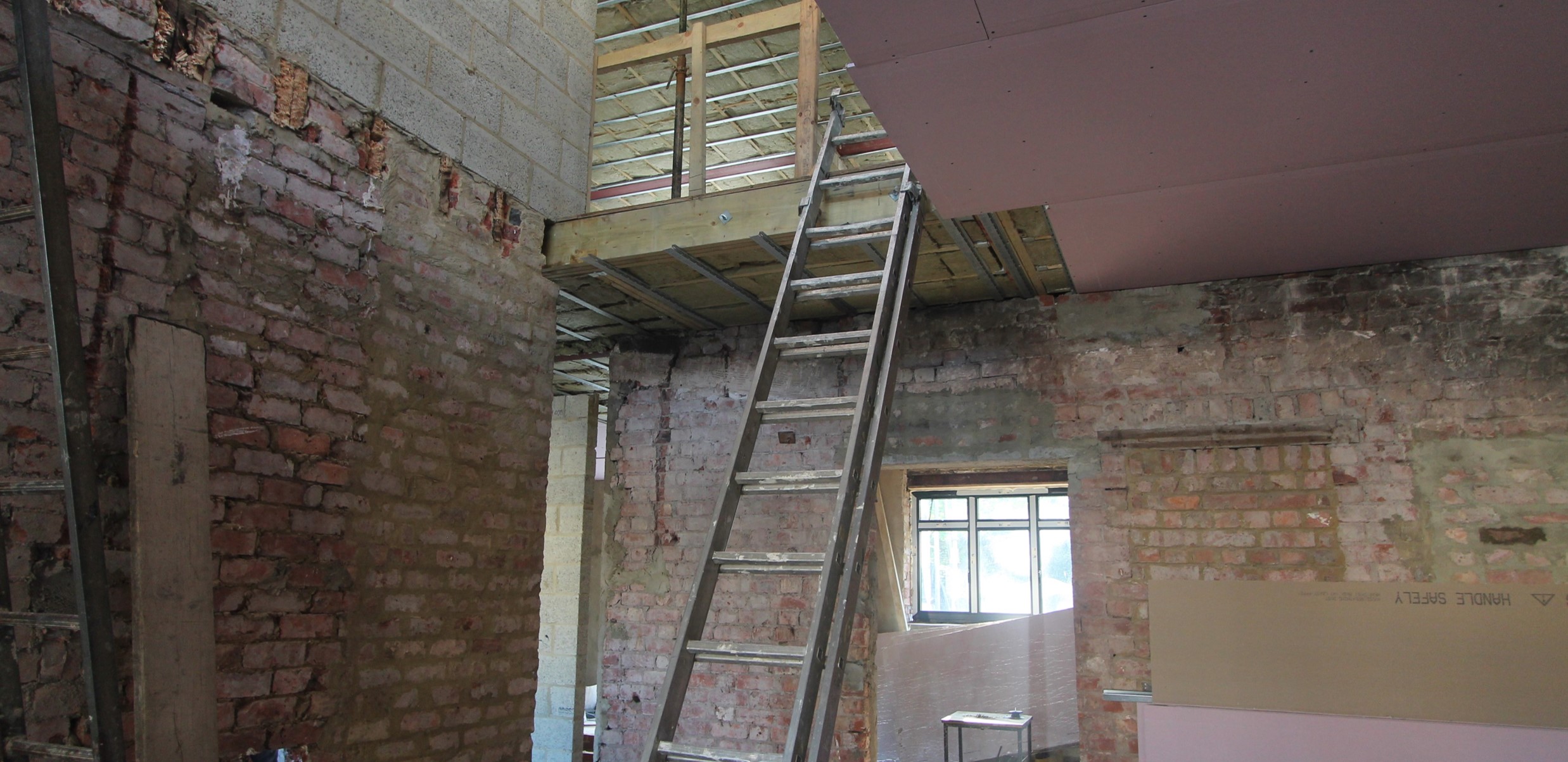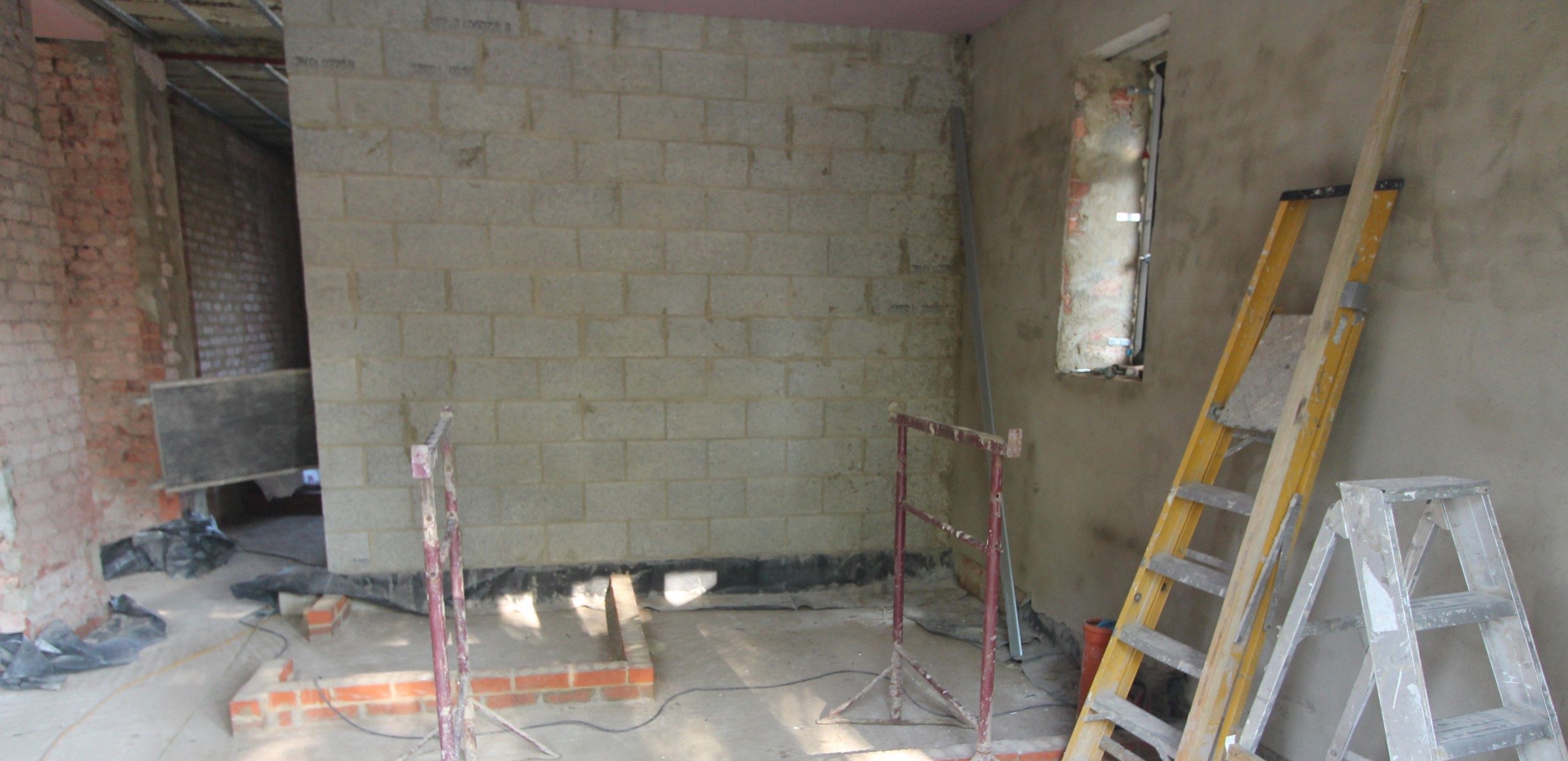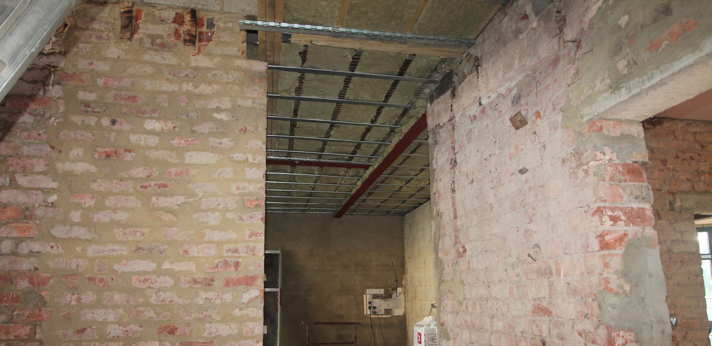 The contractor has carried out all necessary demolition and clearance, and is now implementing the internal layouts. Initial works include preparing the new staircase locations and beginning to define the new structural arrangement—visible in the images showing the concrete supporting walls and internal partition walls taking shape.